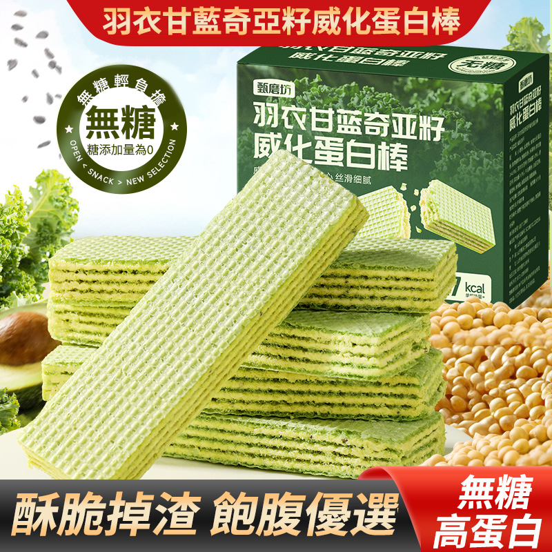 【羽衣甘藍威化蛋白棒】代餐抗餓 控糖 酥脆口感 高蛋白零添加無蔗糖,精選優質穀物製作而成,營養又健康 ,羽衣甘藍+奇亞籽,膳食纖維,科學配比